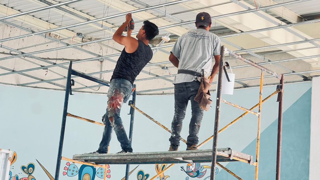 Entre las mejoras realizadas en la Casa de Día destacan: impermeabilización de azotea; desmantelamiento de falso plafón existente y renovación de éste; colocación de canaletas y estructura metálica secundaria; desconexión eléctrica y desmontaje de luminarias e instalación de nuevas luminarias LED.