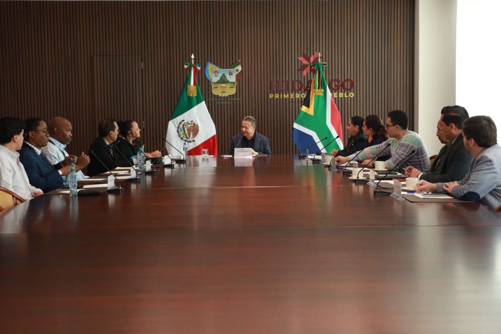 Pachuca. Hgo- En el marco de la designación de Pachuca como campamento base de la selección de Sudáfrica para el Mundial de Futbol 2026, el gobernador Julio Menchaca Salazar sostuvo una reunión con la embajadora de la República de Sudáfrica en México, Beryl Rose Sisulu, con el objetivo de fortalecer la relación institucional y de cooperación internacional.