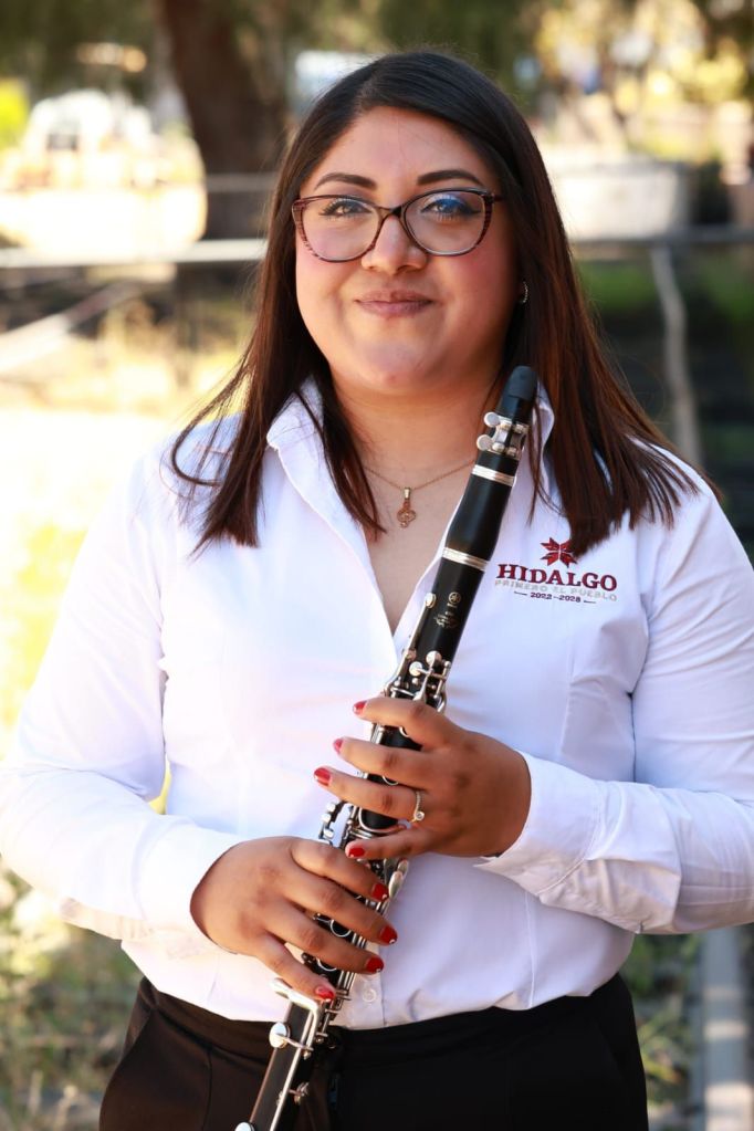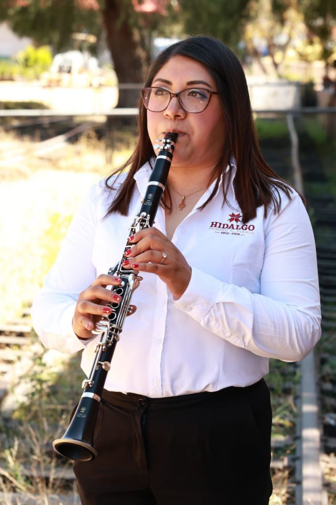 Con oído fino, la clarinetista representa a una nueva generación de músicos que integran la Banda Sinfónica del Estado de Hidalgo. A sus 23 años, ya forma parte de una agrupación que reúne a más de 40 integrantes y que es una de las más longevas de Hidalgo, pues su fundación data de 1901.