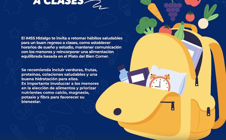 Pachuca. Hgo- Las vacaciones para los alumnos de educación básica están por concluir, por ello, el Instituto Mexicano del Seguro Social (IMSS) en Hidalgo recomienda a los padres de familia retomar hábitos saludables para un mejor regreso a la actividad escolar.